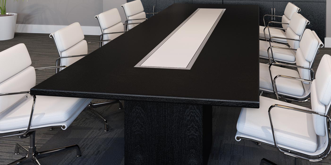 Several of Oracle’s exotic wood veneers are featured on the table designs shown in Eborcraft’s downloadable Oracle boardroom furniture brochure.